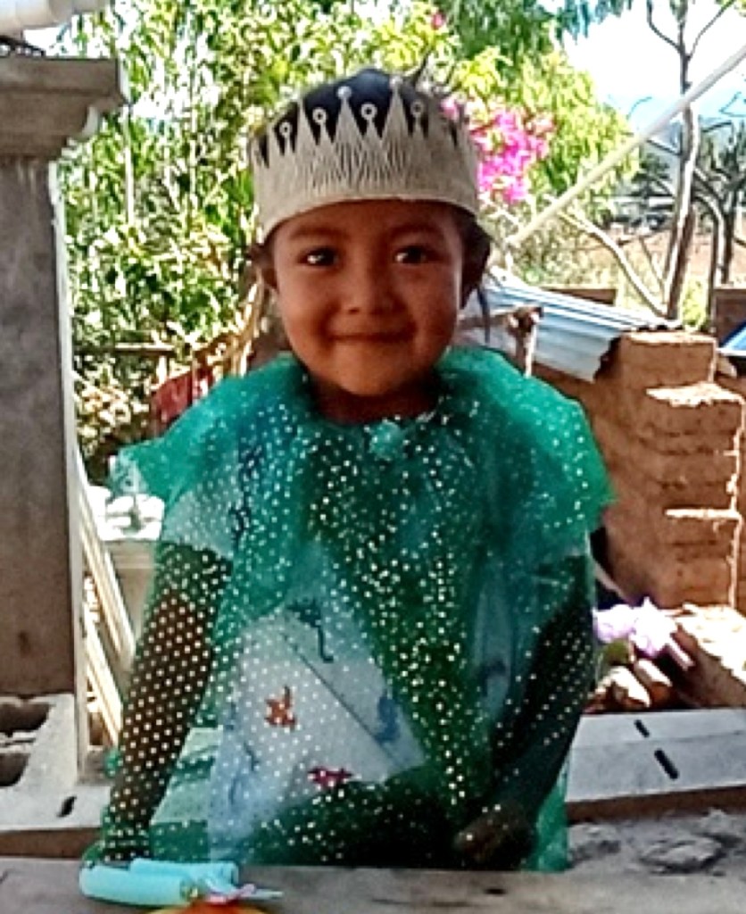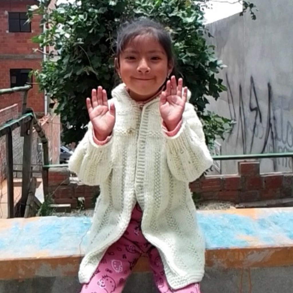 Everytime I get a photo of Luz sending me a wave, my heart turns into a puddle of goo at her feet. She is a ray of light in my life, with an interesting mom, Maxima, who’s a knitter of great skill- Luz wears her creations often. I love sponsoring in Bolivia— mailings get there fast, even the physical ones, they’re generous with photos, letters, art and their hearts. It’s just all around a great place to sponsor, if you’re going through ChildFund. I can’t recommend it enough.